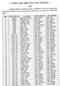 जिले में बड़ा पुलिस फेरबदल: थाना प्रभारी समेत कई जवानों का तबादला