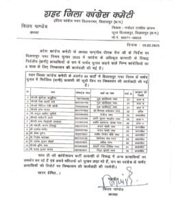 इसके अलावा, जिला कांग्रेस कमेटी (ग्रामीण) ने भी संगठन विरोधी गतिविधियों में संलिप्त आधा दर्जन से अधिक नेताओं को पार्टी से बाहर का रास्ता दिखा दिया है। कांग्रेस का यह सख्त कदम यह संकेत देता है कि पार्टी अनुशासनहीनता को कतई बर्दाश्त नहीं करेगी।