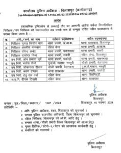 इसके साथ ही, छत्तीसगढ़ पुलिस मुख्यालय ने भी आदेश जारी करते हुए 4 निरीक्षकों का तबादला किया है। इस आदेश के अनुसार: