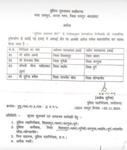 4. निरीक्षक सुरेंद्र बघेल – जांजगीर से कोंडागांव।