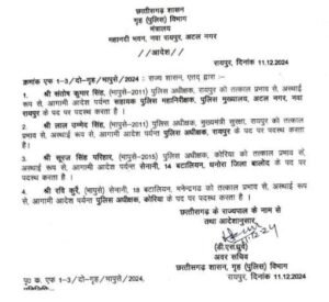 ब्रेकिंग न्यूज: रायपुर के एसपी संतोष सिंह हटाए गए, डॉ लाल उम्मेद सिंह संभालेंगे चार्ज