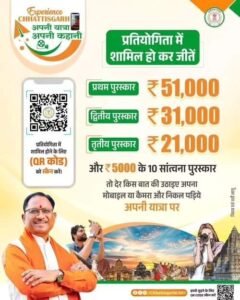 आप छत्तीसगढ़ के विभिन्न स्थलों की यात्रा कर रहे हों या प्रदेश के किसी अंचल में रहते हैं,तो रील्स या शॉर्ट वीडियो के माध्यम से अभिव्यक्त करें उस क्षेत्र की ख़ासियत और शेयर करिए अपने छत्तीसगढ़ की कहानी।