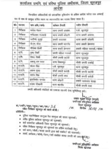 सूरजपुर। पुलिस विभाग में बड़े पैमाने पर थाना प्रभारियों के तबादले किए गए हैं। एसपी प्रशांत ठाकुर ने जिले में कानून व्यवस्था को मजबूत करने के उद्देश्य से कई थाना प्रभारियों को इधर से उधर किया है। इस बदलाव से पुलिस व्यवस्था में सुधार की उम्मीद की जा रही है। एसपी ने कहा कि यह कदम जनता की सुरक्षा और प्रभावी पुलिसिंग सुनिश्चित करने के लिए उठाया गया है।